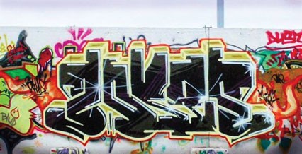 В граффити Дусто не понять ни одной буквы, но это неважно: взрывную абстракцию кислотных цветов хочется рассматривать не меньше, чем конструктивистские игры со шрифтами от Эль Лисицкого.