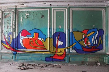 Русский Хуан Миро от уличного искусства. Яркие цветовые пятна и аморфные формы он рисует без эскизов на отдаленных от центра домах. Женя — «художник уличной волны» — так называют стрит-артистов, востребованных в галереях, свои работы он переносит со стен на холсты.