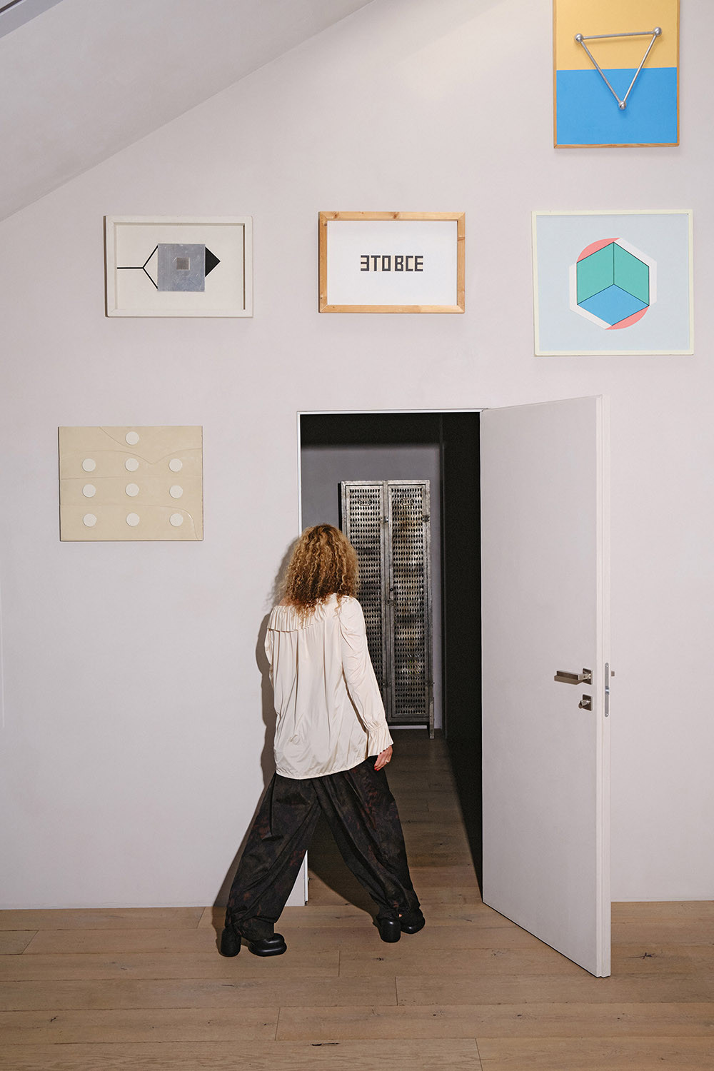 Вернемся к дому. С ним я составляю единое целое, мне важен порядок внутри и снаружи. Адрес с историей, красивая чистая парадная с цветами, что вокруг здания — все имеет значение. Меня удивляет, когда в доме порядок, но открывается дверь, а снаружи бардак. В загородной квартире в Павловске я много времени потратила на то, чтобы добиться переноса от дома скамеек, на которых, к сожалению, выпивали и днем, и ночью. В прекрасных березовых аллеях, ведущих к парку, парковались машины, я победила и это, спасибо всем неравнодушным. Ответственность за место, в котором ты живешь, очень важна: дом намного больше, чем просто помещение или интерьер. Из гаража я обустроила себе летнюю кухню, где могу и обедать, и загорать, и хранить велосипеды для прогулок в парке. Искусство тоже везде — лестницу украшают прекрасные работы Давида Боровского, ленинградского художника-графика, а квартиру — геометрические абстракции Леонида Борисова, экспрессионизм Владимира Яковлева и минимализм Алены Кирцовой.
