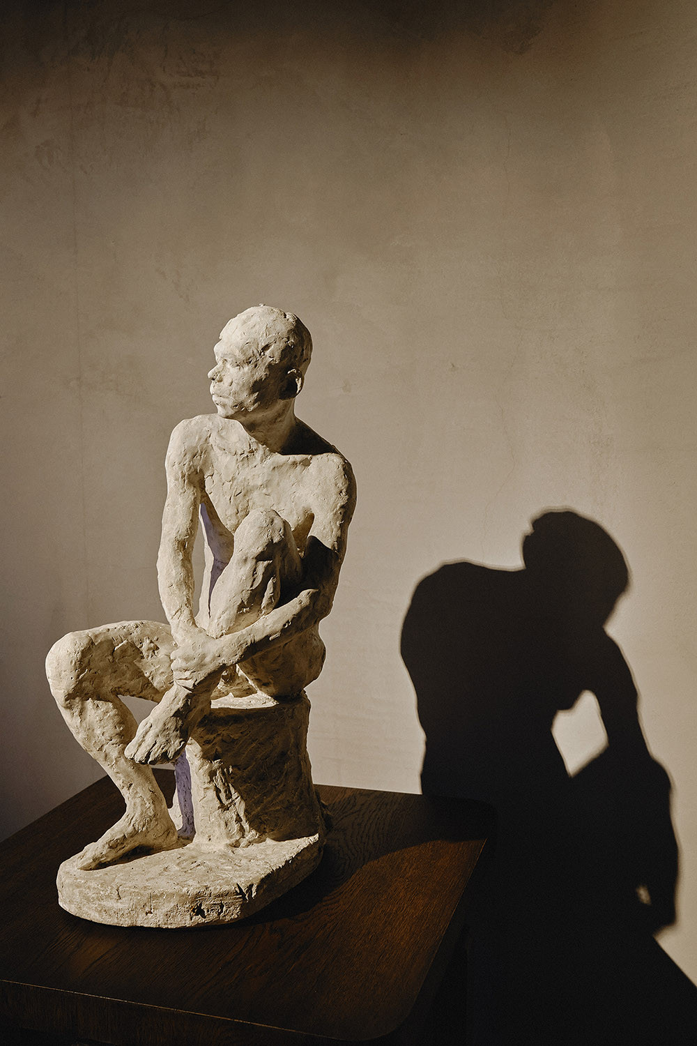Так в моей жизни появилась скульптура. Я почти случайно увидела работы советского скульптора Дмитрия Филипповича Цаплина — сердце мое сжалось и чуть не выскочило. Большая часть его наследия была утрачена, но то, что я увидела, было невероятно. Так у меня появился «Лев идущий» — абсолютно очеловеченная фигура, чья форма отсылает к Египту и Ассирии, наскальным рисункам, где автор и черпал свое вдохновение. В 1927 году нарком Луначарский отправил Цаплина в творческую командировку в Европу, и тот работал и выставлялся в Париже, Мадриде, Лондоне и на Майорке, дружил с Шаляпиными (не все знают, что великий бас и его сын, тоже Федор, были очень одаренными художниками и скульпторами) был знаком с Роденом и Пикассо, но практически все свои огромные камни после семилетнего путешествия привез обратно в Москву.