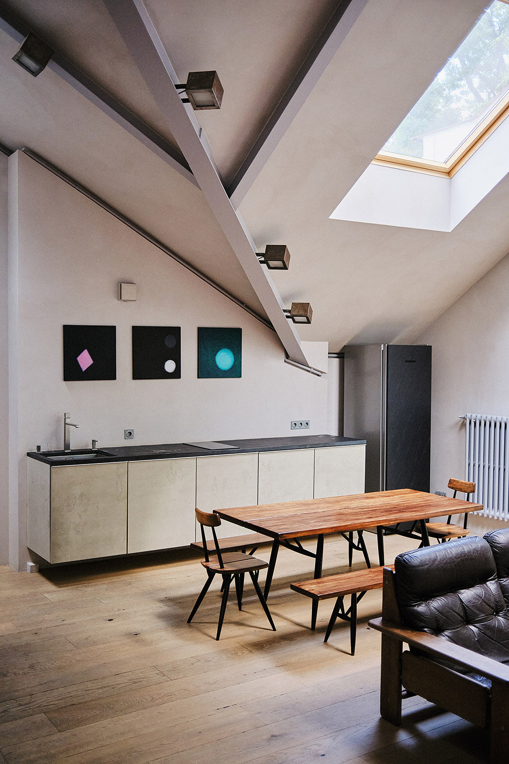Создать «мое» пространство в городской квартире, учитывая пожелания, когдато мне помогла Анна Самойлова из архитектурной мастерской Даниила Зеймана. Иллюзия — считать, что ты можешь сам разобраться в архитектуре без помощи профессионала, это как лечиться по «Гуглу» — можно, но неэффективно. Мебель выбирала функциональную и лаконичную, а не «красивую», на это повлияло мое увлечение конструктивизмом. Я пользуюсь стальной кухней Bulthaup, сижу на кресле-качалке Sirkka Юрье Лампила 1936 года или кожаных креслах PK 22 Пола Кьерхолма, которые получили гран-при Миланской триеннале 1957 года. Мне важно, что за винтажными предметами есть история и они уже прошли какое-то бытование. В основном вся моя мебель сделана в период от 1920-х до 1970-х. Но есть и немецкий железный шкаф родом из 1930-х. Для меня важно как удобство, так и то, чтобы на объект было радостно смотреть. Если в доме вдруг появляется то, что не соответствует этим двум критериям, пока я не избавлюсь от этого, не буду спать спокойно. В расстановке мебели и развеске искусства мне важна логика. В моем представлении у всего есть свое место — только оно и никакое другое, поэтому иногда вещь долго кочует по квартире, пока не будет найдена идеальная точка. Мир я воспринимаю глазами, даже музыку слушаю редко.