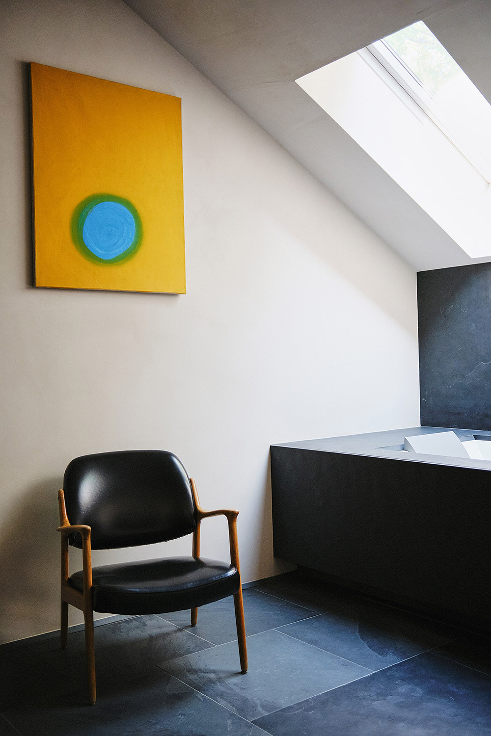 Нет такого места, где нельзя разместить искусство, и правил, как именно его экспонировать. В художественных институтах объясняют, что скульптуру нужно смотреть со всех сторон. Да, скульптура часто требует пространства, как минимум, высоких потолков, к тому же если это не гипс, она еще и изрядно весит. Но ничто не мешает эти правила нарушать. Любое пространство, где мы проводим хотя бы небольшую часть времени, подходит для искусства. Да, даже туалет. Для каждого из своих интерьеров я выбрала отсутствие цвета. Никакого розовенького, голубого и серо-буро-малинового — у меня все нейтральное: стена существует для картины, а не наоборот. Тогда есть глубина: дом с голыми стенами для меня плоский.