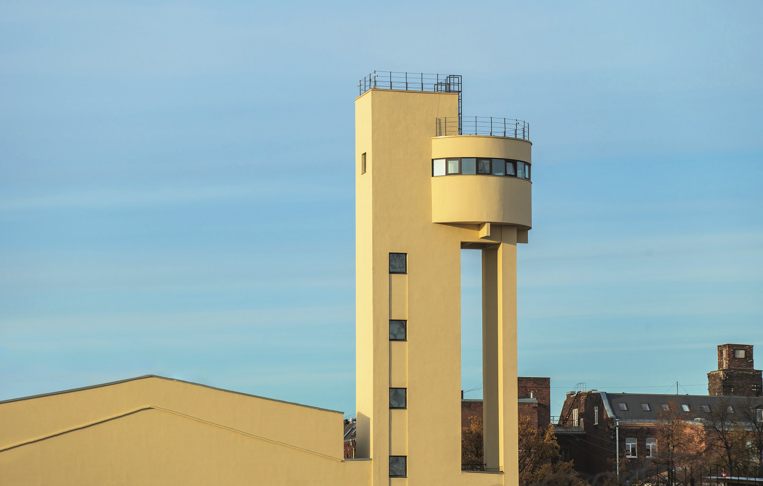 Прежде чем взяться за реставрацию башни Чернихова, совместно с КГИОП было принято решение о бережном сохранении целостного облика уникального памятника конструктивизма. К работам приступили в 2019-м: к тому времени основной объем «Канатного цеха» претерпел значительные изменения по отношению к первоначальному облику, задуманному Черниховым. Появились пристройки, множество хаотично возведенных перегородок. К счастью, водонапорная башня дошла до нас практически без изменений: при этом она давно не использовалась по прямому назначению, внутренний бак для воды был демонтирован, металлическая лестница находилась в аварийном состоянии.
