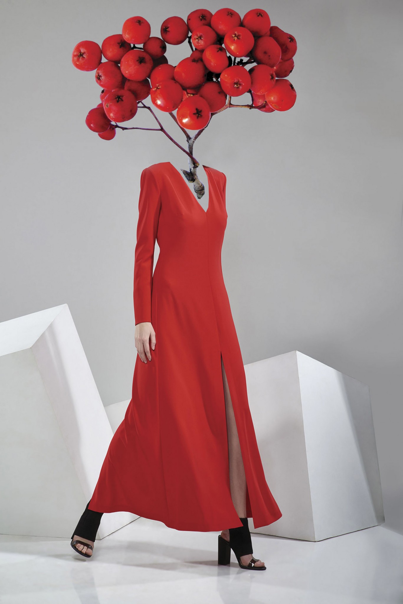 Идеально скроенный удлиненный алый пиджак, бордовое платье с запахом или кумачовые брюки-сигареты — по завету легендарного модного редактора и консультанта Института костюма нью-йоркского музея Metropolitan Дианы Вриланд дизайнер Васса ищет в коллекции идеальный оттенок красного. В автобиографии D.V. Диана жалуется: «Красный цвет многое проясняет: