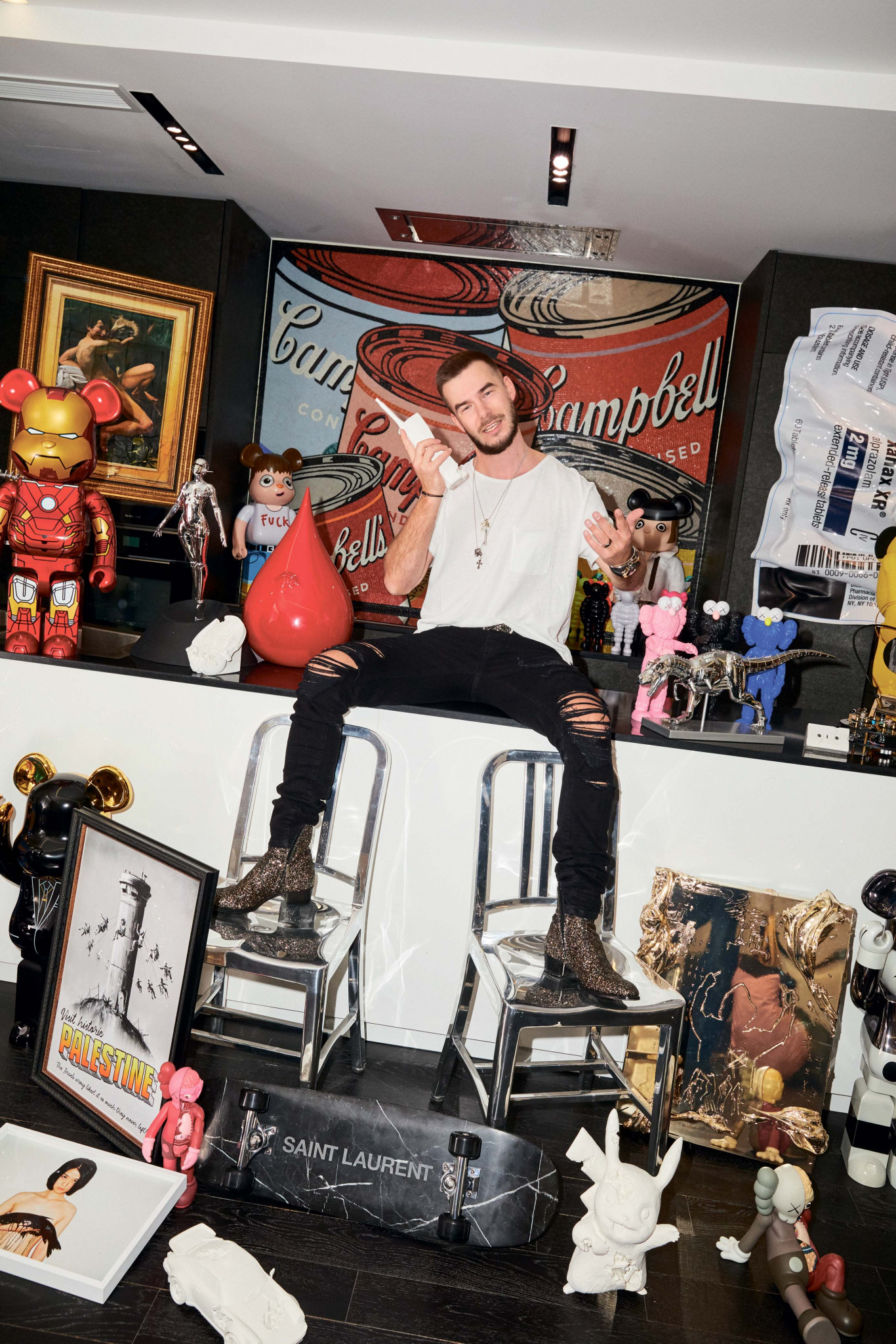 Футболка и джинсы Amiri, казаки Saint Laurent Paris (ДЛТ). Виталий Аксенов-Шабловский и коллекция Bad Gallery. В руках — объект Дэниэла Аршама из серии Future Relics.