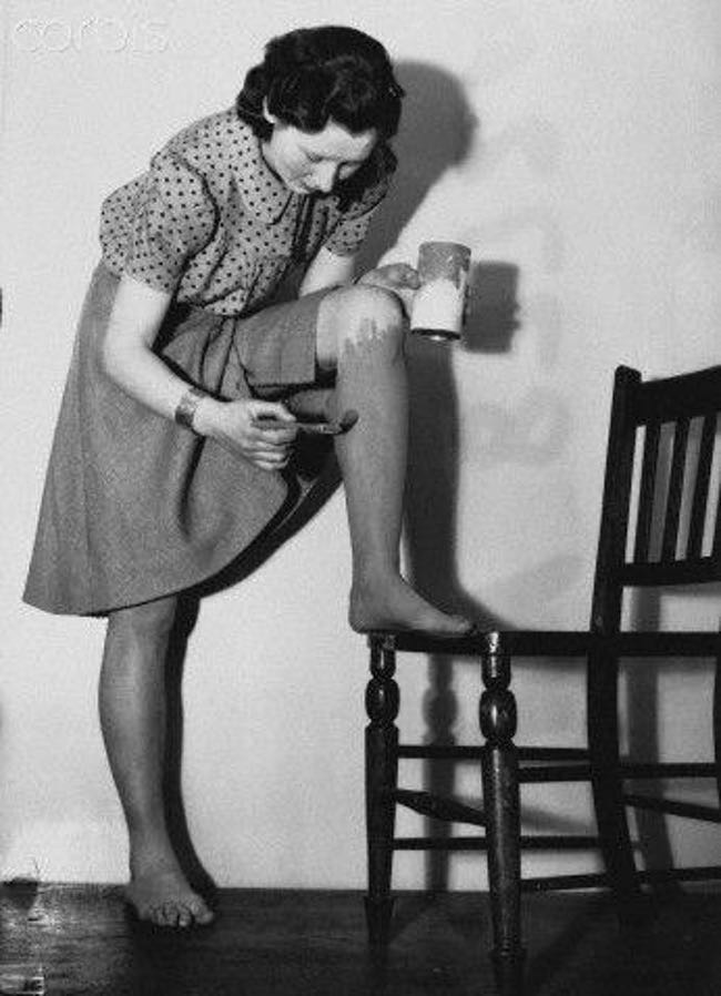 Голые женские ноги считались верхом неприличия, а тратить деньги на нейлоновые колготки было недопустимой роскошью. В результате каждое утро девушки красили ноги специальной краской, имитировавшей темные колготки. Более состоятельные могли себе позволить вечером краску смыть, чтобы дать коже дышать, а бедные девушки носили ее, пока не сотрется. Краска у многих вызывала аллергию, но выбора не было.