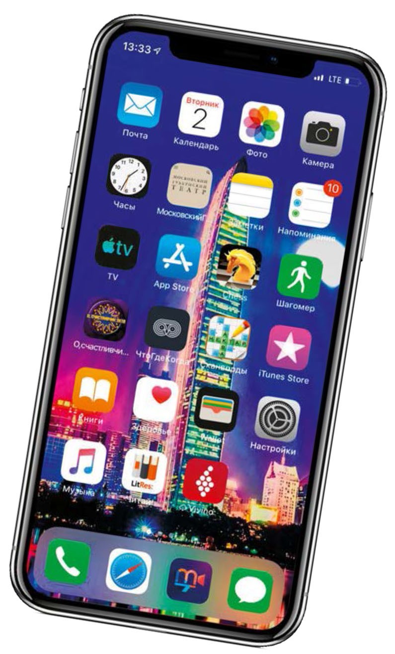 На заставке – картинка ночных огней мегаполиса. Очень радует глаз. Мне нравятся пешие прогулки: установил шагомер и теперь фиксирую пройденные расстояния. А когда попадаю в пробку на машине, разгадываю сканворды или играю в онлайн-шахматы.