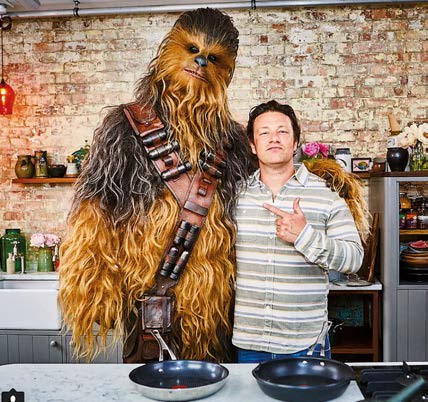 Все повара знают: на кухне не обойтись без колпака, чтобы волосы не попали в блюдо. Английскому кулинару Джейми Оливеру пришлось непросто, когда к нему в гости заявился Чубакка... Героя фильма «Звездные войны» пригласили коллеги, чтобы поздравить босса с днем рождения, ведь он один из самых преданных поклонников фантастической саги.