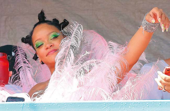 На этой фотографии очень не хватает Филиппа Киркорова. Он бы точно оценил розовые перышки Рианны, которыми она украсила свой наряд для ежегодного карнавала. Организаторы, в следующий раз зовите и нашего поп-короля – он вам покажет, что такое КОСТЮМЫ!