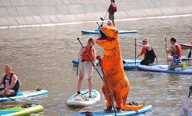 Анита Цой, это ты? Выходи, тебя раскрыли! Помните, певица снялась в костюме динозавра в клипе «Ибица» Филиппа Киркорова и Николая Баскова? Похоже, ее наряд пришелся по душе одному из москвичей, который пришел в образе тирекса на SUP-регату по Москве-реке, посвященную Дню города. Главное, чтобы концовка мероприятия была не такая же, как у закадычных друзей в видео.