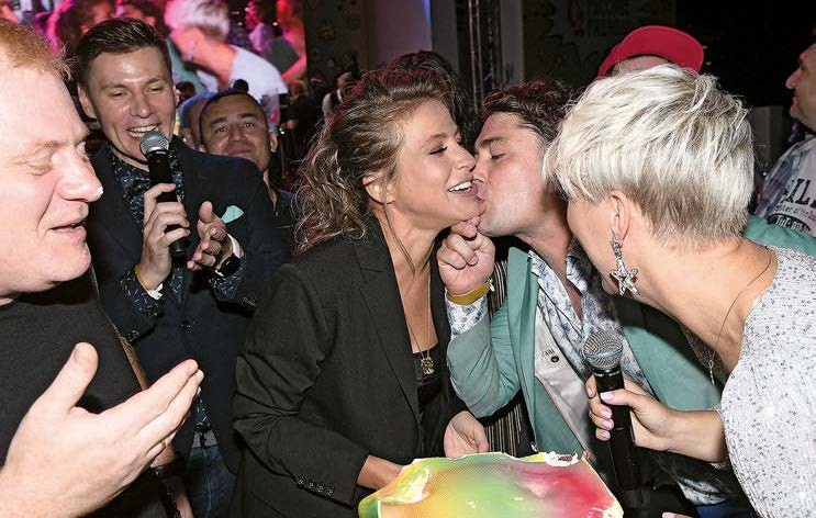 Ох, Юлия, что ты делаешь с мужчинами! На вечеринке, посвященной 24-му дню рождения «Русского Радио», телеведущая «охмурила» коллегу – шоумена Дмитрия Оленина. Тот одарил Барановскую нежным поцелуем, а затем им обоим было сладко – пришло время накормить гостей праздничным тортом.