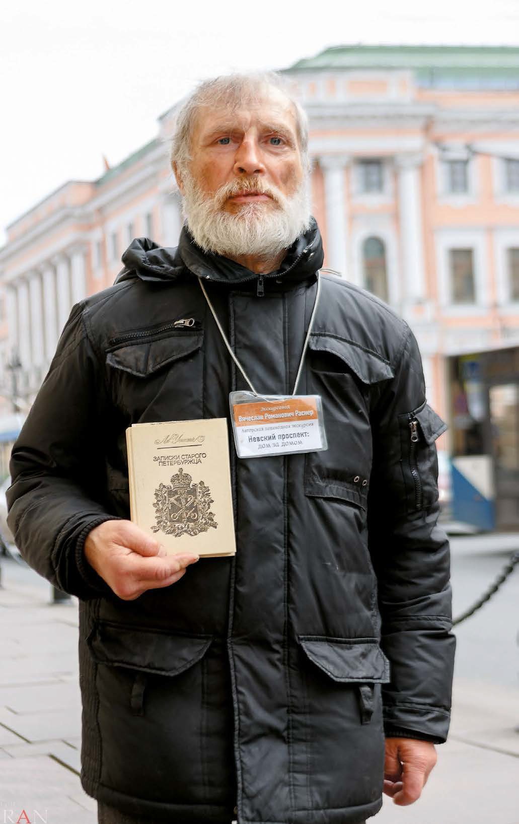 Сморщенное лицо, седая борода, неприметная одежда. На вид Раснер – обычный пенсионер, сразу и не скажешь, что бродяга. В 1975 году мать выписала Вячеслава Романовича из квартиры и отправила жить в коммуналку. После такого поступка родного человека мужчина уже считал себя бездомным. Но тогда еще только на словах. Беда пришла в 2007-м, когда бывший учитель географии и биологии связался с черными риелторами. Те запудрили мозги, подсунули на подпись липовые документы и отобрали единственный угол. «Самое тяжелое время – зима, – рассказывает «СтарХиту» экскурсовод. – Идти было некуда, ночевал на улице. Спасение нашел на замороженной стройке института рядом с Троицким собором. Пробирался туда и отогревался. Чтобы не умереть с голоду, просил милостыню. Но денег катастрофически не хватало, поэтому решил заработать их честным путем. Меня всегда увлекала история города, ходил по библиотекам, восполнял пробелы в знаниях. Так и стал экскурсоводом».
