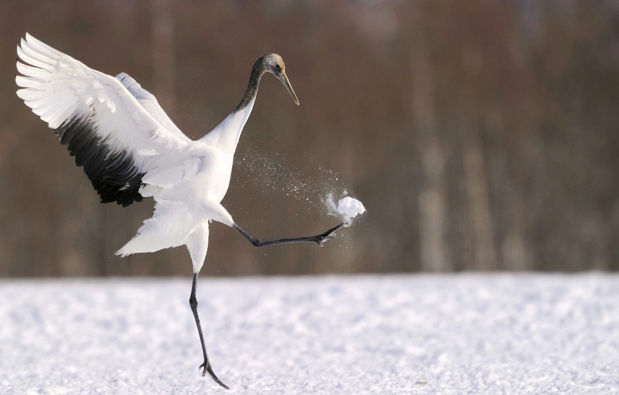 В феврале у японских журавлей начинаются брачные танцы. Поклоны, вращения, повороты и даже подбрасывание травы – все это соединяется в неповторимое действо.