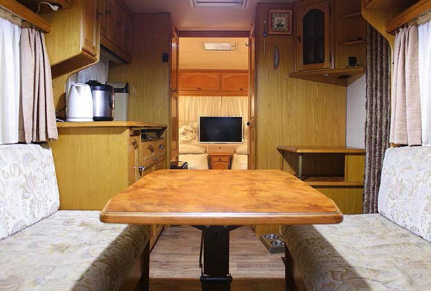 На тринадцати квадратных метрах есть все самое необходимое: четыре спальных места, кухня с раковиной, газовой плитой и холодильником, столовая зона, туалет и душ с теплой водой, шкафы для одежды. Количество вещей Тима, Лизы и двоих сыновей строго ограничено: четыре ложки, четыре вилки, четыре чашки, четыре тарелки – и не больше!