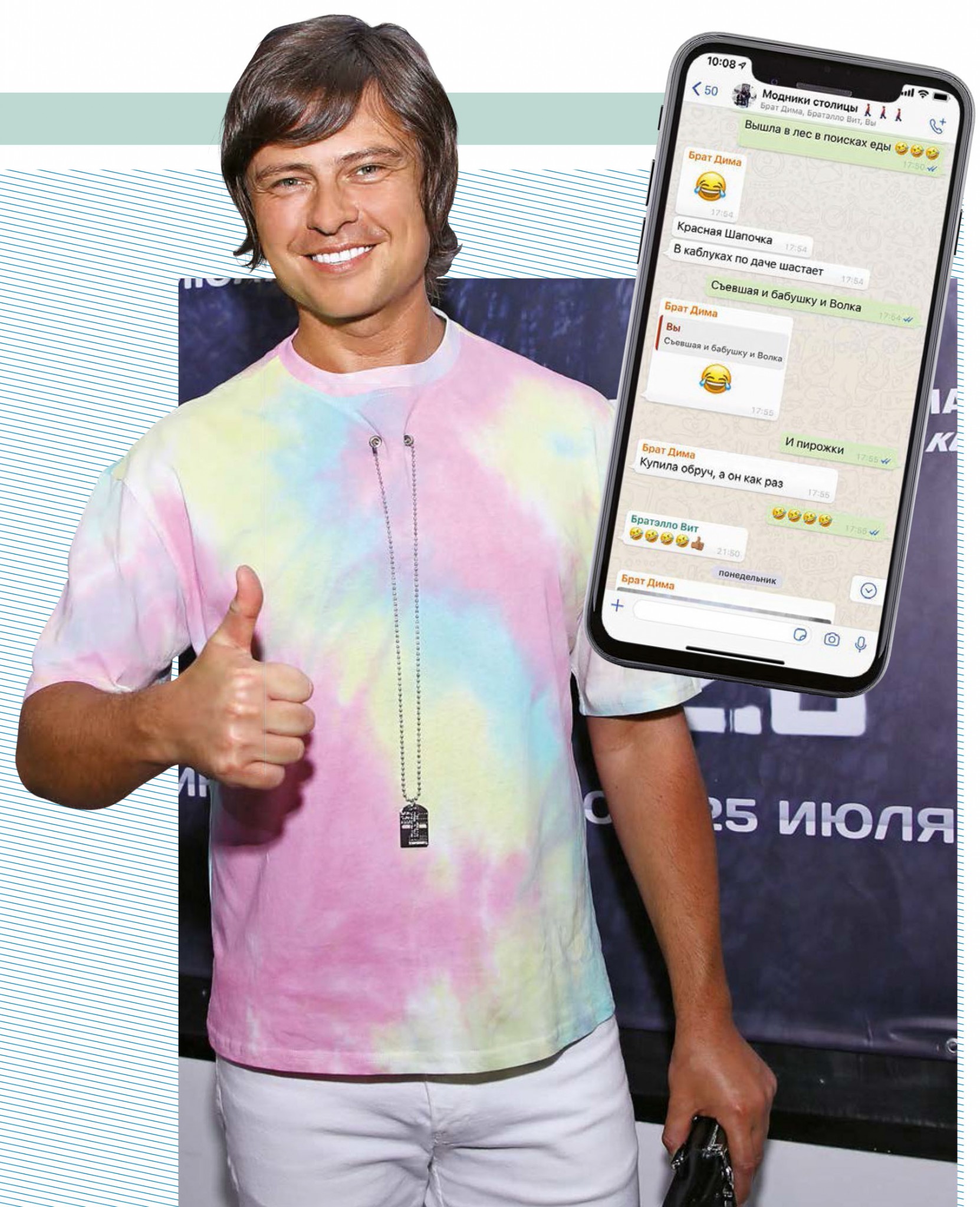 С друзьями, братьями Савчуками, создали группу «Модники столицы», куда сбрасываем фото крутых шмоток. Виталик и Дима – модели. Иногда шутим. В данном случае речь о снимке общей знакомой, которая в 25 лет раскабанела, потому что любит поесть. Поржали над тем, как она стоит на высоких каблуках на крыльце дачи: мол, в доме все сожрала, теперь смотрит в сторону леса.