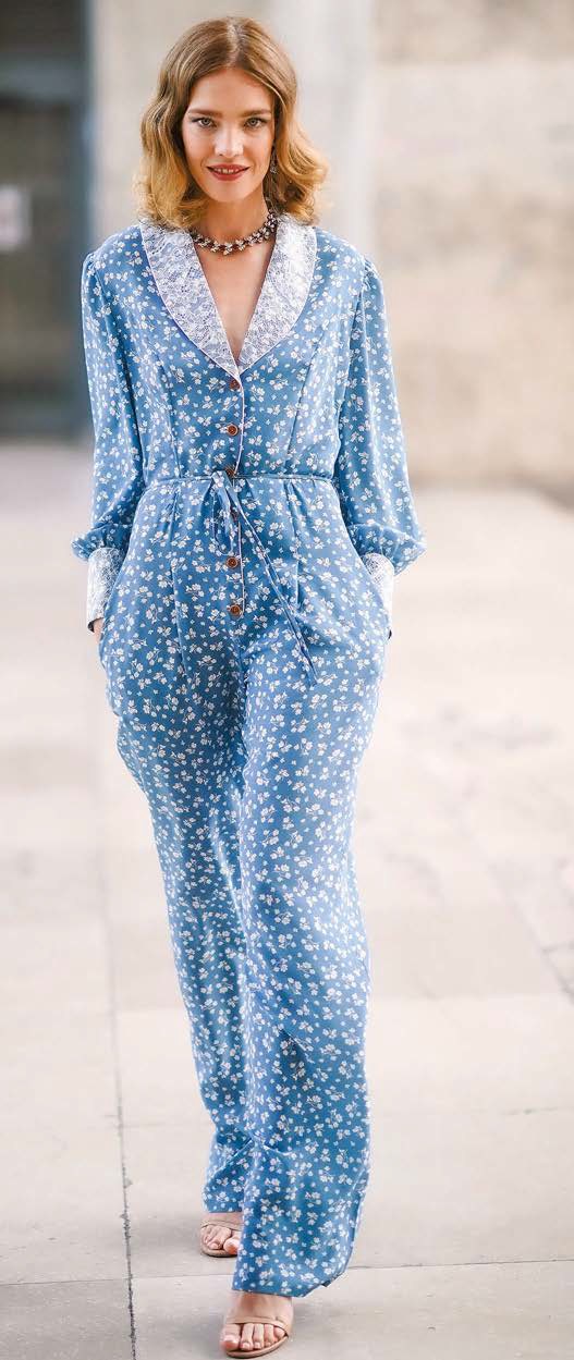 «Деревенская ромашечка? Круглые лацканы? Детские пуговки? Ощущение, словно взяли клеенку со стола и попытались превратить в пижаму. Наташе нужен однотонный комбинезон с угловатым воротником. Единственное, что спасло от потери лица, – цвет. Этот синий ей идет».