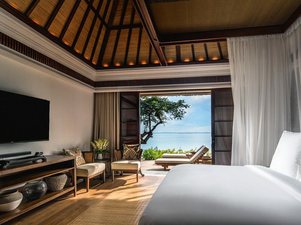 Именно Four Seasons Bali at Jimbaran Bay двадцать лет назад поднял чудо-остров Бали до уровня, интересного джетсеттерам. Дверей у его лобби нет принципиально, как нет и присущего пятизвездочным отелям лишнего пафоса — он тут аккуратно отмерен. Чтобы было похоже на большую балийскую деревню, до блеска отмытую, максимально комфортную, но живую и добрую. Каждая из ста сорока семи вилл крыта соломой, полы деревянные, вокруг — сады из бугенвиллей и плюмерий у прудов с лотосами. Два года назад отельеры решились на масштабную реновацию, но умудрились провернуть все так, что постояльцы даже не заметили, что по соседству идет стройка. Обновили и односпальные виллы Premier с прекрасным видом на залив, и просторные двуспальные, а в начале года навели красоту в самых больших — Royal и Imperial. Атмосферу не испортили. Просто новое дерево, новая солома, новая мебель, умопомрачительные ванные и чуть выщербленные (как в местных храмах) колонны на балконе.
