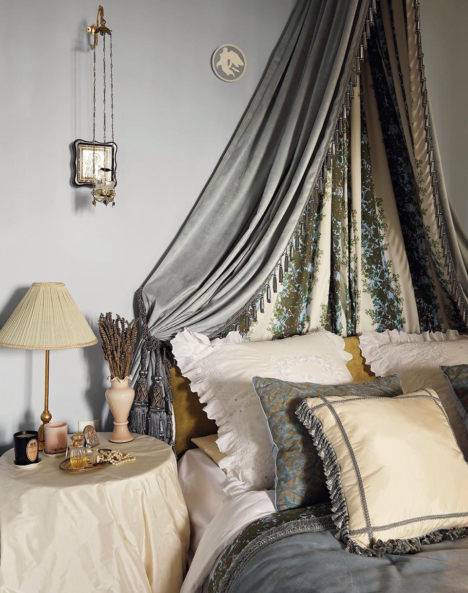 Горячий «эрл грей» льется в чашку конца сороковых годов. В конфетнице кузнецовского фарфора горкой лежат безе. Два массивных подсвечника так и просятся в сцену первого бала Наташи Ростовой. «Я сама их придумала: скомбинировала элементы разных канделябров начала XIX века, — объясняет Юлия. — Они из бронзы, покрыты двадцатичетырехкаратным золотом». Сама владелица и дизайнер марки Russmotive, воскрешающей искусство русской вышивки, одета сейчас в домашний костюм, расшитый золотыми пчелами. Волосы уложены небрежной волной, на щеках естественный румянец.