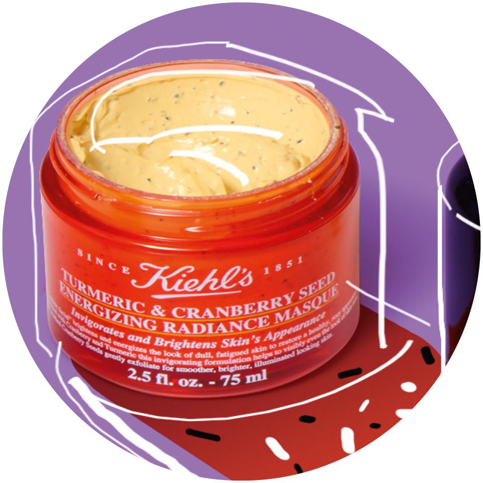 1. Маска для мгновенного сияния кожи с куркумой Turmeric & Cranberry Seed Energizing Radiance Masque, 3090 руб., Kiehl’s. Выглядит очень аппетитно, но так сильно застывает на лице, что смывается разве что спонжем. Что, впрочем, усиливает эффект пилинга от измельченных семян клюквы и улучшает цвет лица.