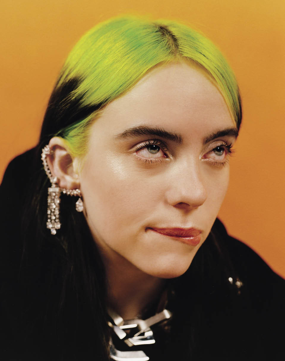 В профессии Билли Айлиш, конечно, «буря и натиск», но в личном общении довольно мила и улыбчива, только злобно щурит уголки своих больших голубых глаз. «Мы никогда еще не чувствовали себя так хорошо, как сейчас, в нашем творчестве и настроении», — говорит она о себе и брате Финнеасе. Альбом When We All Fall Asleep она записала в шестнадцать лет. «Некоторые части его были великолепны, и я люблю этот альбом, но тогда я была не в самом лучшем душевном состоянии». С тех пор она много ходила к психотерапевту и сделалась гораздо спокойнее. Билли часто смеется, иногда обрывая себя на полуслове, чтобы поиронизировать над собственной серьезностью и над головокружительной траекторией успеха. Например, когда я спрашиваю, где она хранит свои пять «Грэмми» 2020 года: «Вон там, на полочке, хе-хе». Но «хе-хе» — разминка, а самый выразительный смех Айлиш, с открытым ртом и поднятыми бровями, — это что-то среднее между хихиканьем и визгом. Такой смех подошел бы цыпленку из мультика.