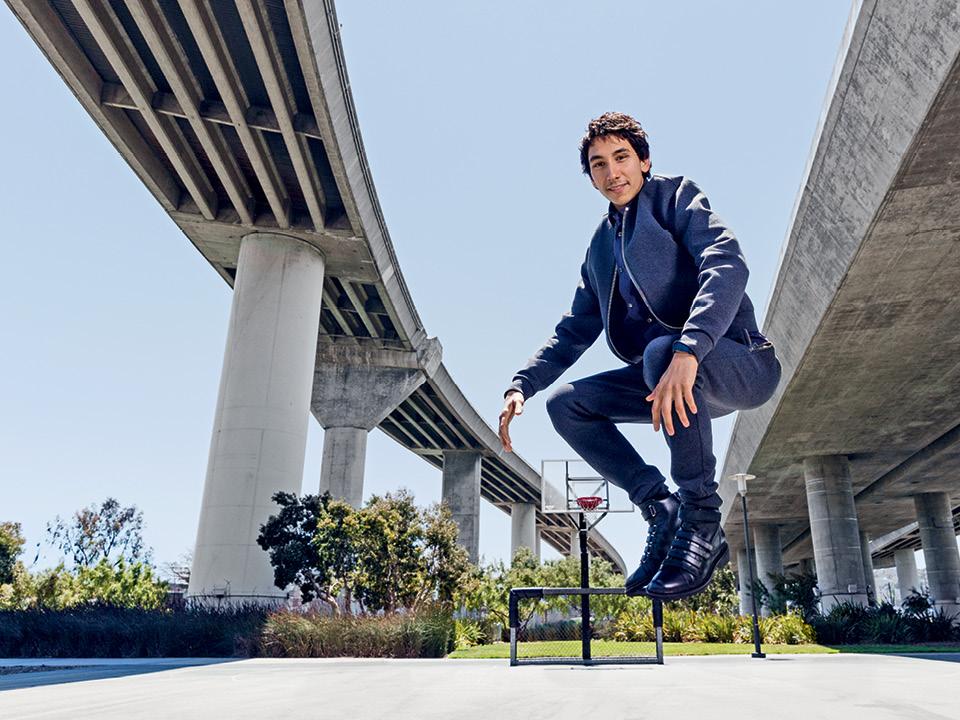 Шер­стя­ная ру­баш­ка, A.P.C.; не­опре­но­вые бом­бер и брю­ки, ко­жа­ные бо­тин­ки, все Michael Kors.