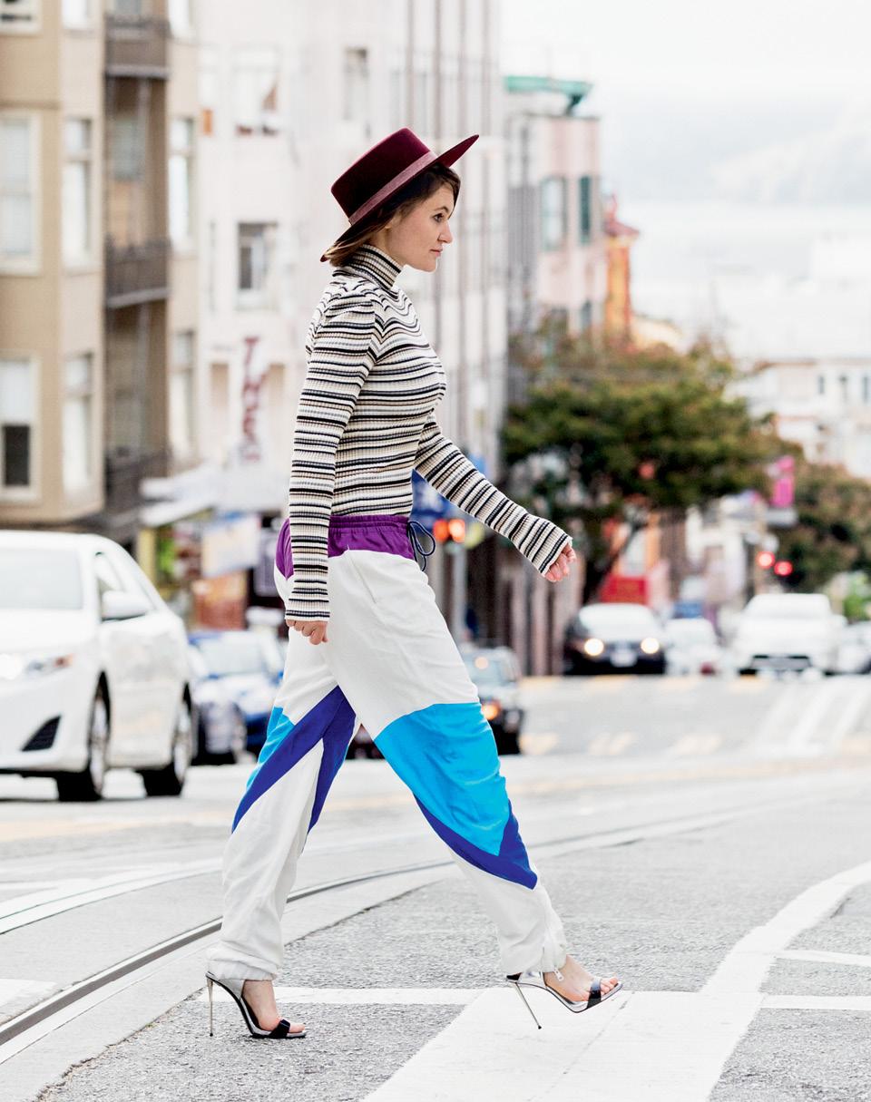 Шерстяная водолазка, шелковые брюки, все Chloé; босоножки из кожи и металла, Giuseppe Zanotti Design; фетровая шляпа, Janessa Leoné.