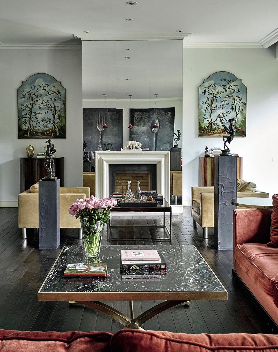 Тут же — медведь Be@rbrick, о котором Катя торопится сказать: «Мы их не собираем!» Но этот — в дизайне очень дорогого нью-йоркского художника KAWS, так что имеет право делить комнату с «Девушкой в розовом» любимца Sotheby's Моиса Кислинга. А еще по первому этажу распределены бронза Шемякина, Дали по слепкам, диптих Целкова, Дубосарский, отливки толстых скульптур Ботеро, раскрашенный Энди Уорхолом плакат Мика Джаггера, скандальная русская арт-группа Doping-Pong. И Мане Кац, которого Игорь трогательно называет «еврейским братом Мане», хоть он и экспрессионист. Катин подарок, винтажный CD‑чейнджер Bang & Olufsen. Но тут же — полуэротическое творчество фотографа Ирины Дэвис, которое жена дразнит «ошибкой молодости».
