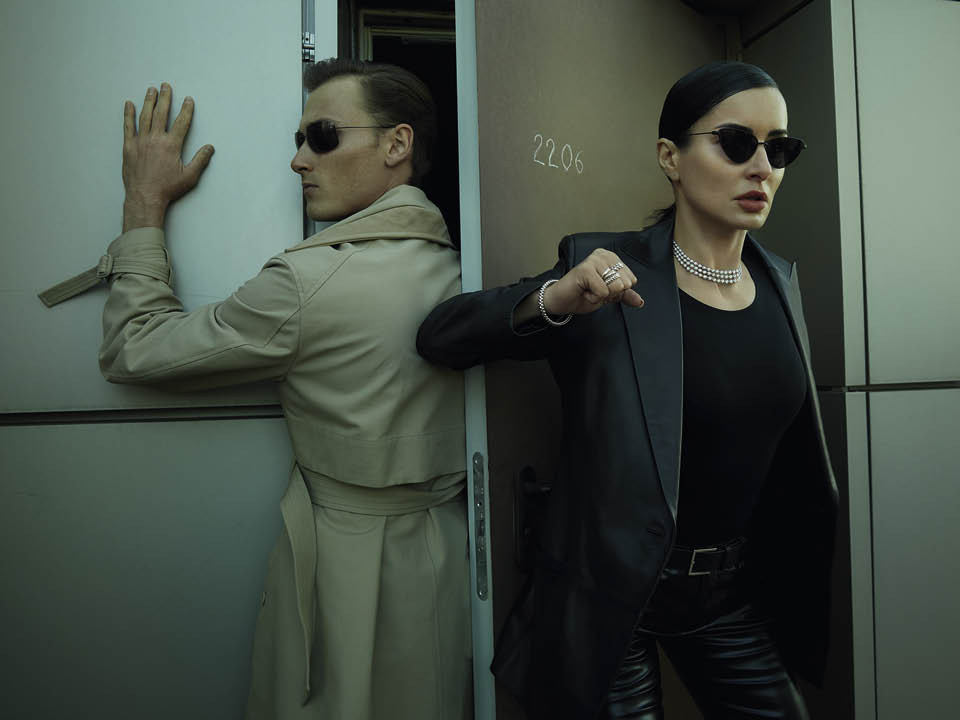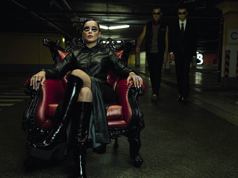 Мы спасаем человечество на пронизывающем осеннем ветру, на крыше отеля Crowne Plaza, откуда вся Москва как на ладони. Восемь часов подряд, прерываясь только на чай с «оранжевым бакинским лимоном», Тина беспрекословно выполняет команды фотографа. Дерется с каскадерами, косплеит кадр с мокрым стеклом, гоняет на «Ямахе». Прямо здесь же, на площадке, переодевается из «Боттеги» в «Тома Форда» (благо весь нынешний модный сезон по законам «Матрицы» состоит из темной кожи). Параллельно с нашей командой юноша Роман лет двадцати пилит для Тины тикток. Глаз-алмаз медиаменеджера несколько месяцев назад выхватил Романа из толпы во время посещения кузницы тикток-кадров, Dream Team House (отсюда вышел, например, Даня Милохин, звезда сентябрьской обложки GQ). Роман мечтает, разумеется, о большом кино, но пока снимает пятнадцатисекундные ролики для фабрики контента имени Тинатин Гивиевны Канделаки.