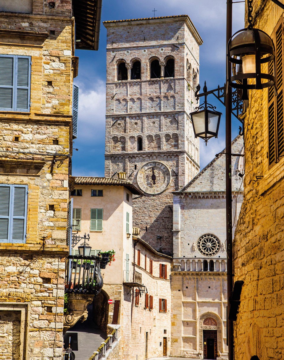 Неплохое начало для экскурсии — оставить машину на подземном паркинге площади Партизан, подняться в город на эскалаторе сквозь руины античной крепости Рокка Паолина и оказаться перед грандиозным мраморным фонтаном Маджоре. Затем идите в любой из местных соборов. Перуджане считают главным собор Святого Лаврентия, где хранится обручальное кольцо Девы Марии. Но лично мне всех милее Сан-Пьетро — скорее музей, чем церковь. Посмотреть на картины Перуджино, Рафаэля, Караваджо, на фрески греческого художника Антонио Вассилакки я прихожу раз в месяц. Задачка для самых внимательных — найти на двух фресках мужчин в очках.