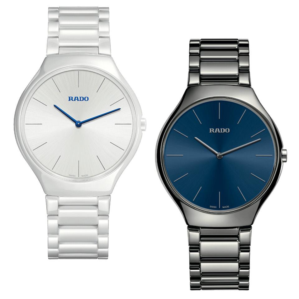 На октябрьском Кубке Кремля официальным хронометристом будут, как и раньше, швейцарские часы Rado. На теннисную тему у них сейчас есть две новые модели True Thinline в тонком (всего 4,9 мм) корпусе из белой или плазменной керамики. В белой модели стрелки синего цвета. В плазменной в темно-синий окрашен циферблат.