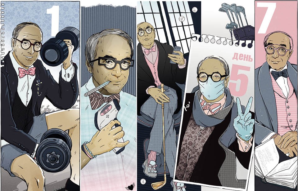 Сделал зарядку. Принял душ. Побрился. Так, надо одеться прилично. Не распускать же себя. Это такой же рабочий день, как и все другие, только дома. Сел за письменный стол в кабинете. Открыл папку. Занимательное, должно быть, дело. Вечером почитаю. Как же замечательно в саду! Солнце, небо голубое. Пока такая погода, надо пойти погулять. Закрыл папку. На улице ходит народ. Люди издали здороваются друг с другом. Какие милые все в нашем писательском поселке. Хорошо, что я побрился и прилично оделся. Дача Познера. Дача Абдулова. Дача Лебедева-Кумача. Дача Утесова? Озеро. Лес. Красота. Пришел домой. Переоделся и пошел в спортзал. Три с половиной часа на тренажерах! Побил собственный мировой рекорд стояния в планке: две минуты сорок пять секунд! Поиграл в гольф. А что на ужин? Борщ. Борщ — это здорово.