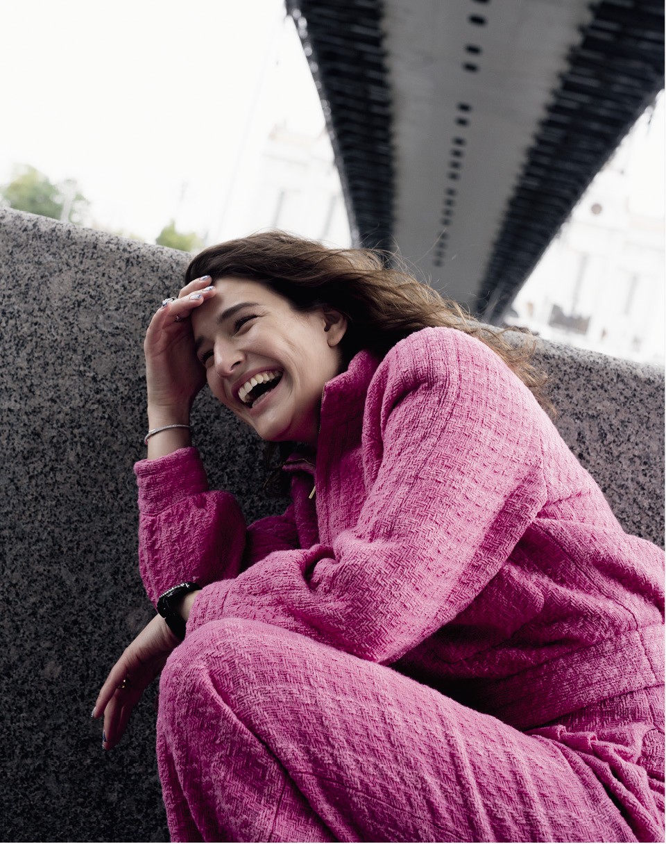 Актриса Софья Володчинская. Шерстяной костюм, часы J12 из керамики и стали, все Chanel; кольцо Coco Crush из белого и желтого золота с бриллиантами, кольцо Lion Venitien из белого золота с бриллиантами, браслет Ruban из белого золота с бриллиантами, все Chanel Fine Jewelry.
