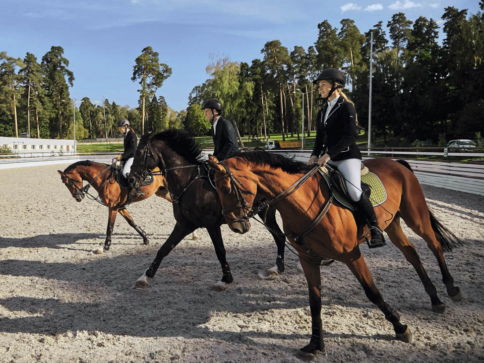 Предприятие с вековым опытом разведения орловских рысаков славится конно-спортивной школой «Акрон». Название — в честь спонсора, одноименной группы химических компаний. Занятия для детей в возрасте от десяти до восемнадцати бесплатные — нужно лишь пройти строгую проверку физподготовки и приобрести экипировку. С обоими пунктами с легкостью справилась дочь Светланы Захаровой и Тимура Иванова, девятилетняя Даша. Внучке Виктора Черномырдина Анастасии — двадцать два (она уже и на Балу «Татлера» дебютировала, в прошлом году), но в «Акроне» ее всегда рады видеть.
