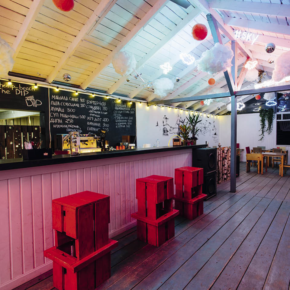 Кафе-бар The Dip работает на «дипломатическом» пляже на окраине Николиной Горы не первый год, но именно нынешним посткарантинным летом стало особенно популярным. По пятницам и субботам продвинутые люди вроде основателей проекта вечеринок Deep Fried Friends или модели Таисии Румянцевой слушали в окружении неоновых декораций Леши Дубинского продвинутую музыку — Филиппа Горбачёва и проекта Simple Symmetry братьев Липских. Для более консервативной, но не менее веселой части рублевской молодежи работает караоке-бар, неутомимые «Невские мелодии».