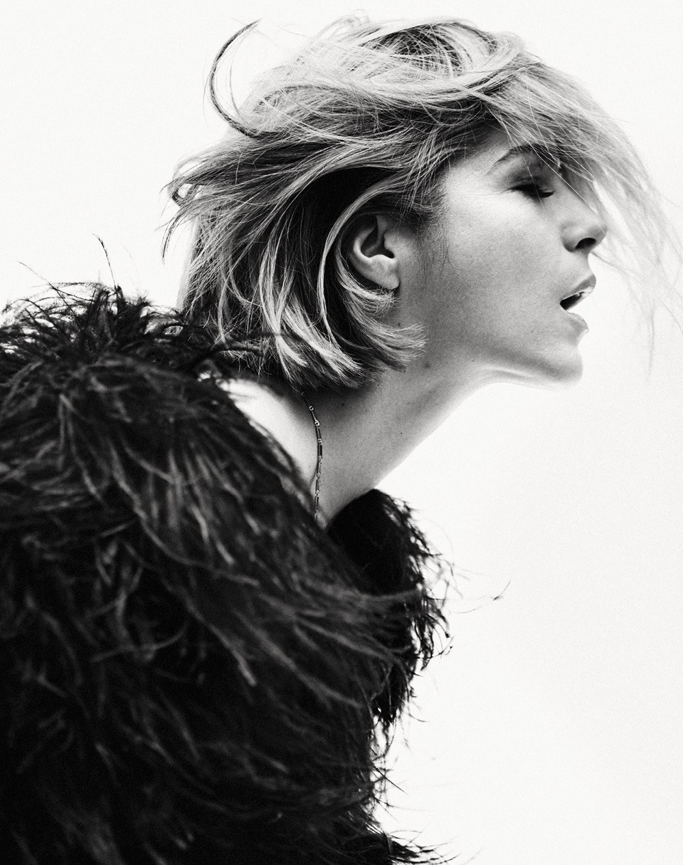 Актриса Сельма Блэр. Кейп из перьев, Tom Ford; цепочка из розового золота, Dezso By Sara Beltrán.