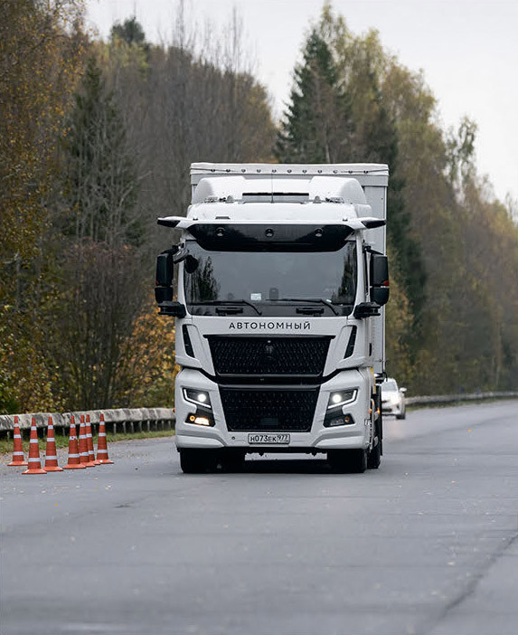Если вы встретите на трассе беспилотный седельный тягач с полуприцепом, то с первого взгляда вряд ли поймете, что им управляет компьютер. Тем более что на водительском месте сидит человек. Но если приглядеться, можно увидеть выделяющиеся на фоне кабины элементы сенсорсета (лидары, радары, камеры) и надпись «автономный».