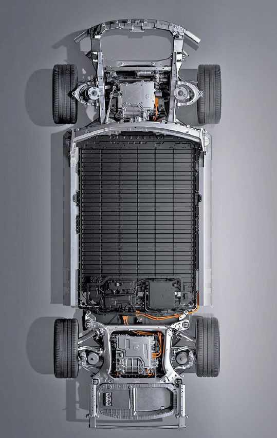 «Чем же так крут "Леопард"?» – спросил я. «Тем, что в пиковом режиме он выдает 952 л. с.!» Автомобиль действительно необычный. Как и положено настоящему внедорожнику, он рамный. По схеме – подзаряжаемый гибрид, причем большую часть времени передвигается на аккумуляторах. Задние колеса приводит в движение электромотор мощностью 408 л. с., передние – второй, на 272 л. с. В машине есть понижающая передача (странная опция для электрокара), блокировка переднего и заднего дифференциала, а межосевая блокировка реализована программным способом: просто синхронизируются обороты электродвигателей по осям. Установленный продольно 2-литровый 272-сильный бензиновый турбомотор работает преимущественно в режиме генератора, но может крутить и передние колеса через электромеханический вариатор. Именно сложение мощности электромоторов и двигателя дают тот мифический пик в 952 л. с., так поразивший моего знакомого китайца. Реальная же отдача гибридной силовой установки – 680 л. с. Схема интересная, автомобиль трудно назвать чистым последовательным или параллельным гибридом. По городу вообще можно кататься на электричестве: зарядки хватает более чем на 120 км. Если же использовать и двигатель, то на одной заправке можно проехать в 10 раз больше.