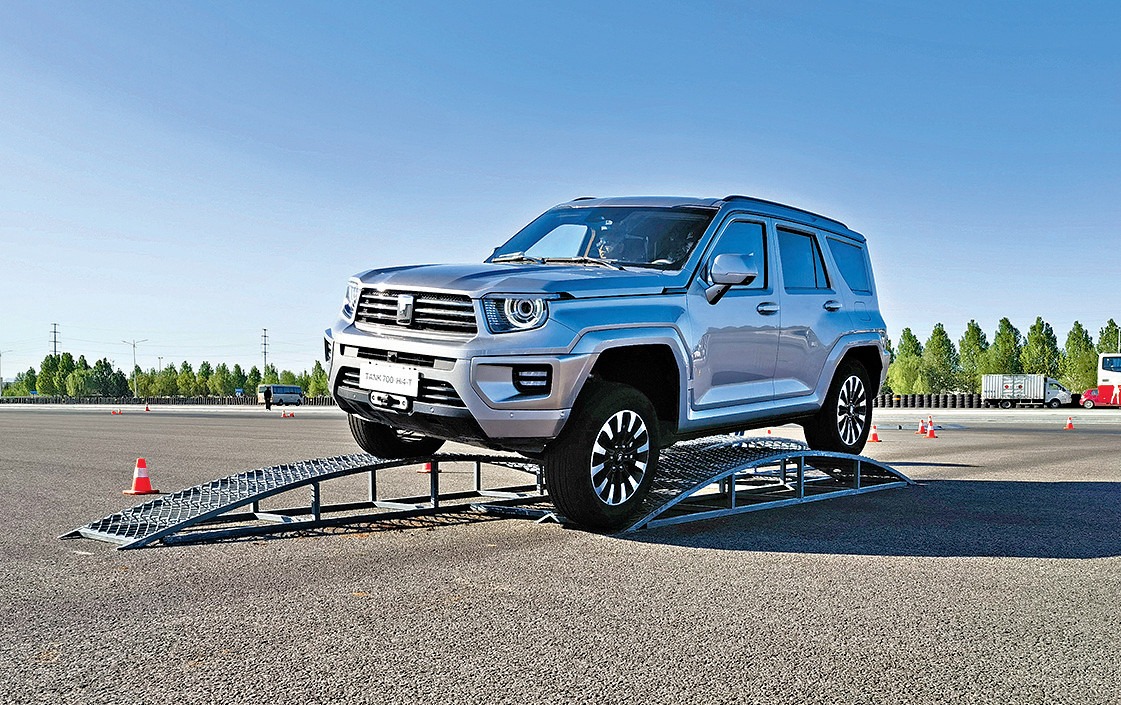 Но вернемся к премьере. На Пекинском автосалоне компания показала свой флагман, TANK 700 Hi4-T – как понятно из аббревиатуры, гибридный. И если Leopard 8 стоял за ленточкой и посетителей выставки не пускали даже в его салон, то TANK 700 был представлен в серийном варианте. Машина построена на новой платформе D71 с многорычажной задней подвеской, адаптивными амортизаторами и пневмоподвеской. Вроде бы должно было получиться совсем другое авто. Но во время небольшого тест-драйва TANK 400, сделанный на прежней платформе P71, и новый 700-й вели себя как близнецы, одинаково бодро преодолевая импровизированные препятствия. Правда, благодаря пневмоподвеске TANK 700 ощущался чуть более вальяжным. Но на дороге их поведение должно отличаться сильнее: у 400-й модели под капотом 2-литровый турбомотор мощностью 252 л. с., у флагмана – V6 3.0 на 360 л. с. А в 9-ступенчатый «автомат» 9HAT встроен тяговый электромотор на 163 л. с., что дает пиковую отдачу системы в 524 л. с.