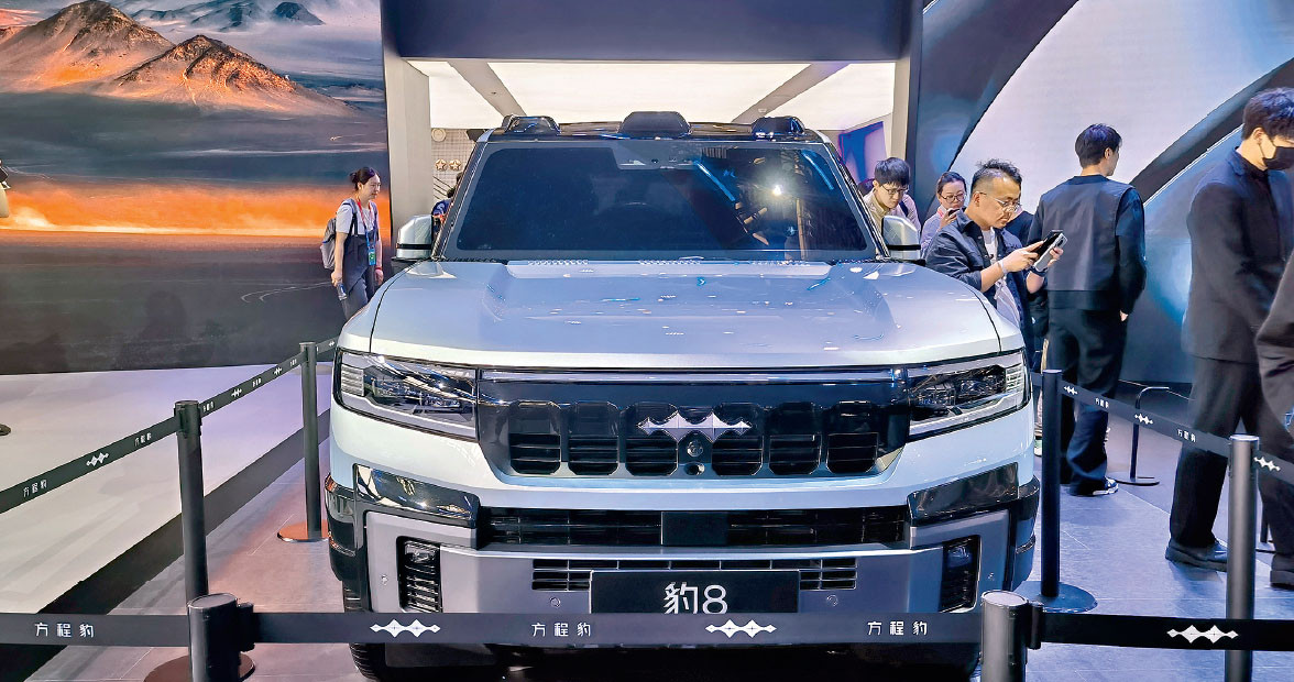 На вопрос, какая компания выпускает эту машину, он не ответил – но отвел меня на стенд. Название действительно выговорить невозможно, в английской транскрипции оно выглядит как FangChengBao. Это премиальный бренд внедорожников самого крупного в мире производителя электромобилей BYD, который выпускает не только электрические, но и plug-in гибридные машины. И понятно, почему я о нем ничего не слышал: бренд появился только в прошлом году и сразу вывел на рынок свою среднюю модель – Leopard 5. А на пекинском автосалоне BYD показал флагманскую версию – Leopard 8.