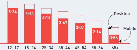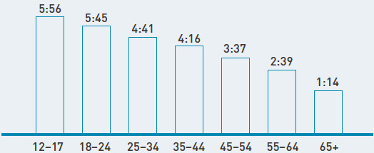По данным Media Cross Web. Вся Россия, население 12+, среднесуточное время среди населения в день