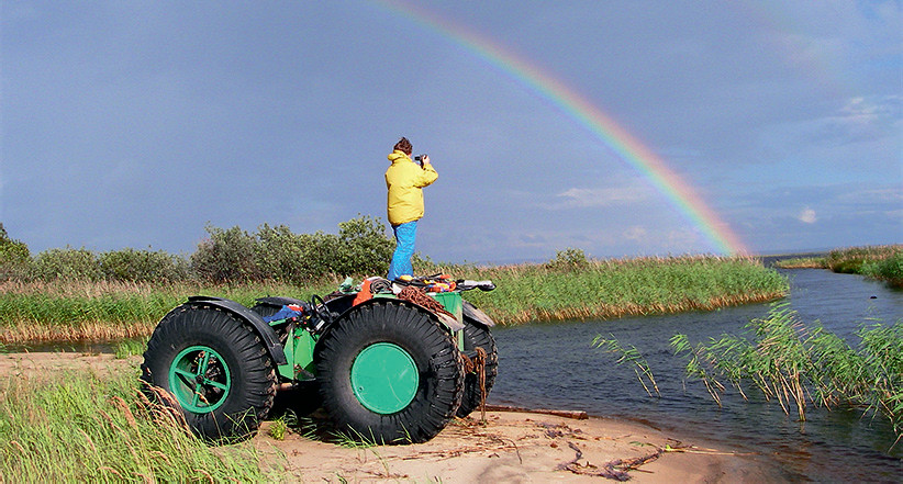 В возрасте 25 лет – в разгар развала страны – Алексей с женой Ольгой переехал в глушь, подальше от суеты. «Зимой без вездехода или лыж от дома не отойти. Именно тогда я и начал делать вездеходы», – вспоминает Гарагашьян. Денег было мало, так что в ход шло все, что валялось вокруг соседних деревень. Редукторы удалось открутить с брошенной сельскохозяйственной техники, двигатель – с мотоцикла «Урал», мосты от БТР нашлись среди вторчермета.