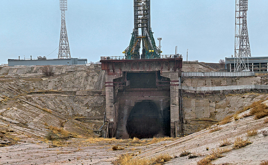 Байконур напоминает мегалитический комплекс давно исчезнувшей цивилизации, которая с помощью циклопических сооружений отправляла в космос сигналы и людей. В безжизненной казахстанской степи космодром занимает чудовищные 7000 кв. км, на которых размещены 18 стартовых площадок – правда, работают сейчас только три: № 81 и № 200 для запуска «Протонов» и № 31, откуда взлетают «Союзы». Помимо собственно стартовых комплексов то тут, то там видны гигантские антенны, заброшенные или полупустые городки, гигантские здания и крохотные бункеры, почти вросшие в землю.