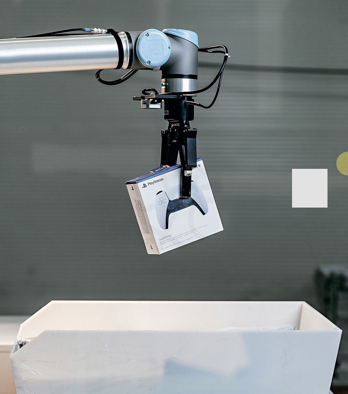 – Все дело в софте. ИИ распознает изображение объекта, определяет, к какой категории он относится, строит карту глубины и затем начинает управлять двухпальцевым пикером. Он даже может предварительно повернуть или передвинуть товар для более удобного захвата. Для двухпальцевого пинч-гриппера, с которым мы работаем, пока никто не написал ПО. Мы достаточно много времени потратили на R&D, в результате получилась многомиллиардная нейронная сеть, которая может управлять маленькой роборукой – Пикером – и захватывать 94–97% ассортимента Яндекс Маркета. Она позволяет машинам комплектовать, сортировать, перекладывать товар из контейнера в нужное место. Причем за счет обучения нейросеть научилась определять и перекладывать в том числе и новые для нее предметы. Вообще проблема мелкой моторики роботов – одна из ключевых задач в робототехнике. И мы работаем над ее решением.