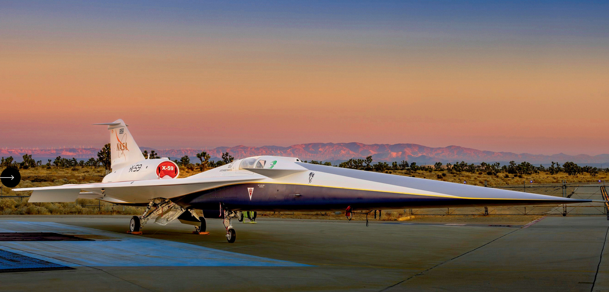 Когда-то огромный расход топлива и невыносимый грохот остановили едва начавшиеся пассажирские полеты на сверхзвуковых скоростях. Однако современные технологии позволяют вернуться к идее и решить обе ее ключевые проблемы. Доказать это призван демонстратор X-59, разработанный в NASA и изготовленный в Lockheed Martin. Аппарат, представленный публике в начале 2024 года, уже готовится к наземным рулевым испытаниям. Более того, в нынешнем году запланированы полеты над городами на скорости более 1500 км/ч, чтобы подтвердить заявленные характеристики – по крайней мере в том, что касается тишины.