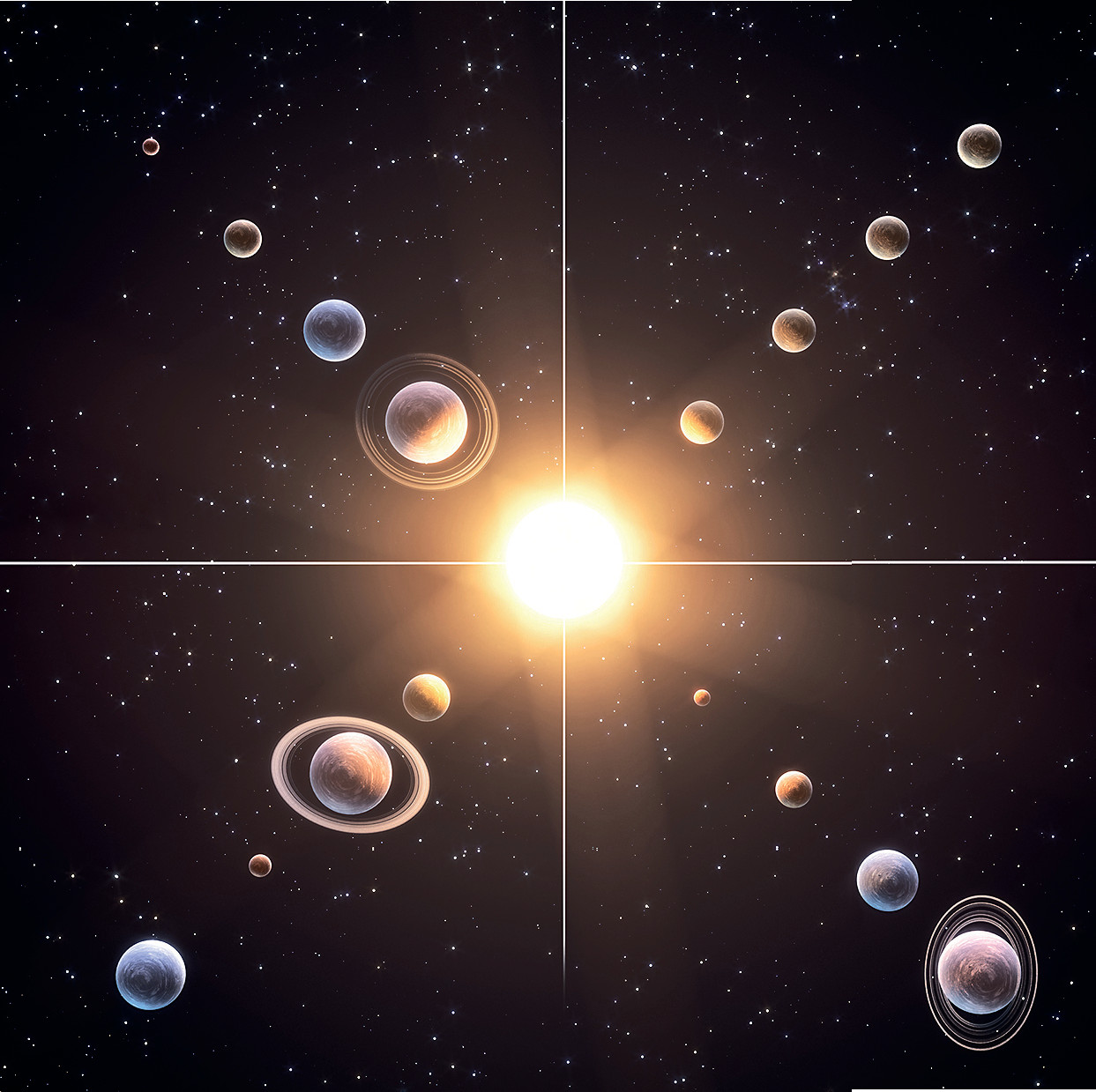 Сегодня, когда в Млечном Пути ученые насчитали уже больше 850 планетарных систем, пришла пора разложить их по полочкам. Астрономы из Бернского университета предложили разделить все системы на четыре группы в зависимости от размера и расположения планет в них. Нашу Солнечную отнесли к самому редкому упорядоченному классу: во внутренних областях таких систем находятся небольшие каменные планеты, а во внешних – газовые и ледяные гиганты. В разупорядоченных системах все наоборот: газовые гиганты расположены около звезды, а малые планеты – на более дальних орбитах. Самыми распространенными оказались системы подобного класса, в которых все планеты имеют близкие размеры. Наконец, в смешанный класс выделены системы, не имеющие определенной конфигурации и структуры. Предполагается, что подобные системы образуются из небольших газовых облаков, упорядоченные и разупорядоченные