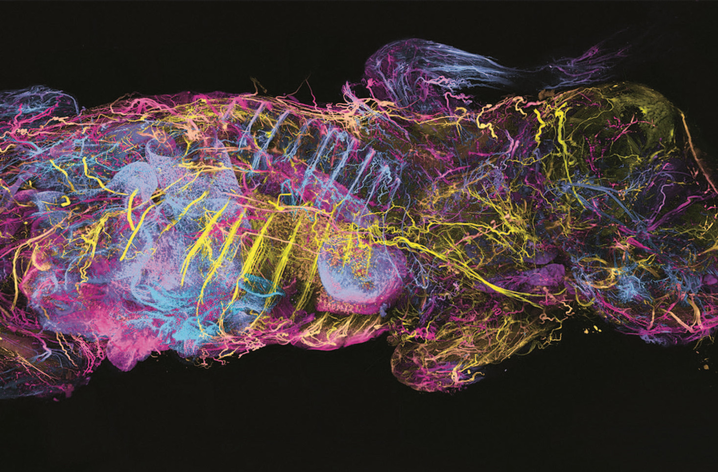 Яркими цветами светится на картинке нервная система лабораторной мыши. Конкретный оттенок соответствует местоположению окрашенных клеток: желтые и розовые находятся дальше от камеры, синие – ближе. Такая визуализация стала возможной благодаря новому методу wildDISCO, созданному биологами из Мюнхенского исследовательского центра им. Гельмгольца. Для этого из тела мертвого животного удалили холестерин, а затем ввели антитела, несущие флуоресцентные красители. Антитела связываются с клетками определенного типа, после чего полученный снимок проходит компьютерную обработку. Ученые надеются, что wildDISCO позволит лучше понять детали многих важных биологических процессов, от работы нервной системы и до развития рака.