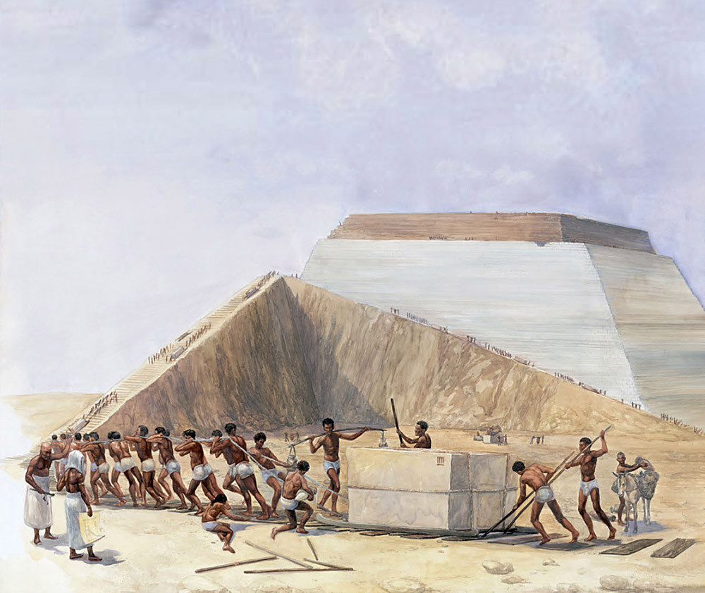 Несмотря на множество гипотез, мы до сих пор не знаем точно, как жители Древнего Египта возводили пирамиды из многотонных каменных блоков, затаскивая их на большую высоту. Недавно французские историки озвучили новую версию, возникшую в результате компьютерного моделирования ступенчатой пирамиды Джосера. Согласно предположению ученых, строители подводили к площадке канал и окружали ее деревянными стенами. Когда требовалось доставить тяжелые камни на нужную высоту, система заполнялась водой и поднимала деревянную платформу с нагруженными на нее блоками. Впрочем, многие эксперты критикуют такую идею, поскольку никаких указаний на использование подобного метода нет ни в древних текстах, ни среди современных археологических находок.