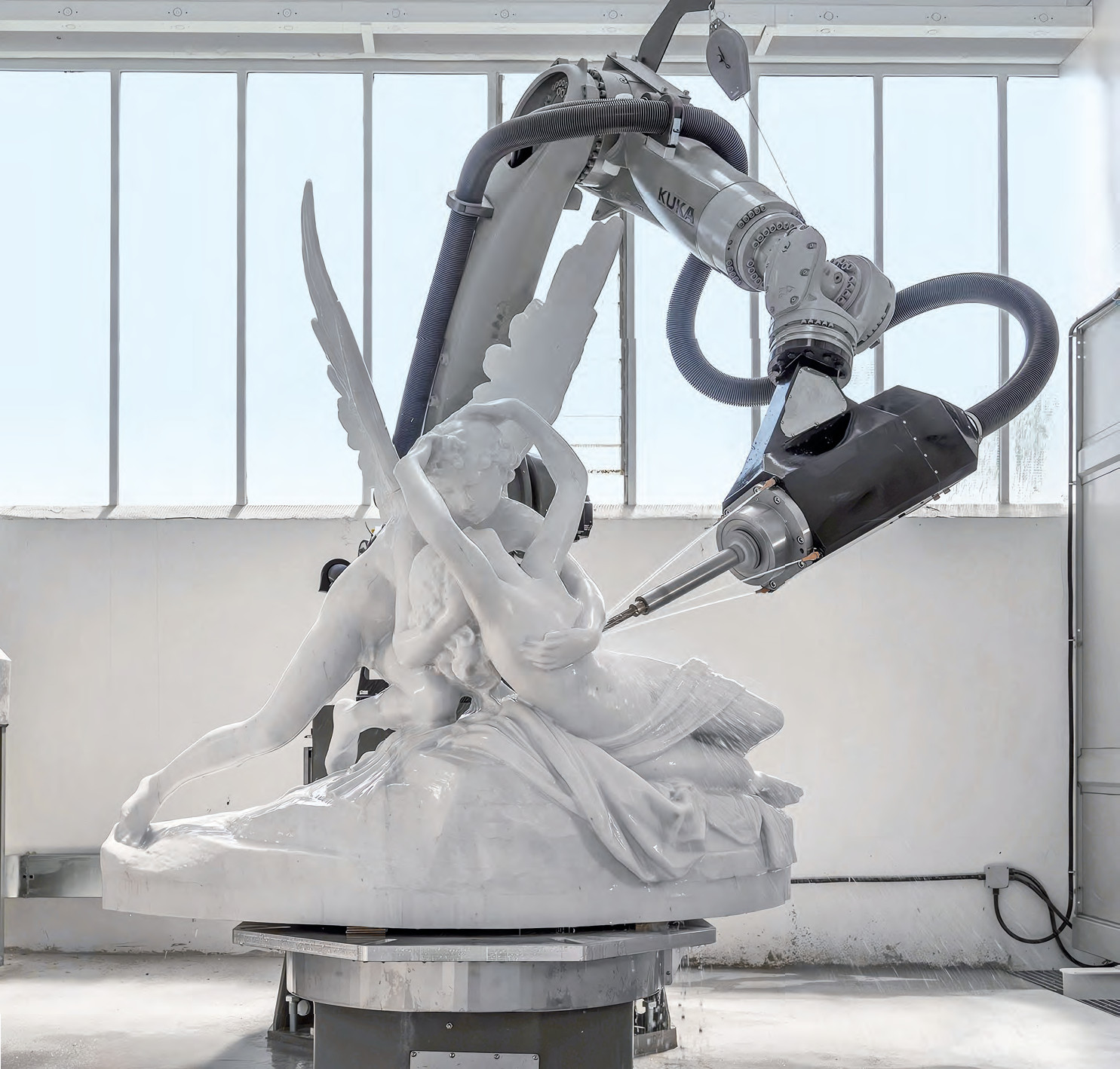 Веками итальянская Каррара славилась тончайшим белоснежным мрамором, с которым работал сам Микеланджело. Неудивительно, что именно здесь появился стартап TorArt и его проект Robotor – роботизированный скульптор. Разработанная Джакомо Массари и Филиппо Тинколини система позволяет сканировать классические произведения и на основе 3D-модели воспроизводить их из мрамора с высочайшей точностью. Изготовление таких копий – старое и важное занятие, позволяющее людям насладиться признанными шедеврами, оригиналы которых находятся в далеких странах или недоступны для осмотра. Robotor упрощает и ускоряет копирование в разы, причем управление машиной реализовано на базе OR-OS и интуитивно понятно даже неспециалисту. Вращающийся рабочий стол способен выдержать каменную заготовку массой до 35 т и высотой до 3,5 м и уже позволил воссоздать детали афинского Парфенона и арки Септимия Севера из Пальмиры.