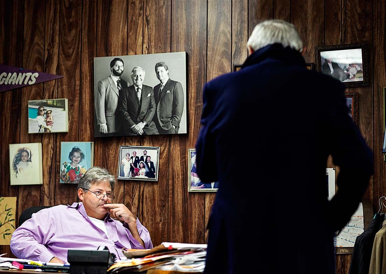 Мы в огромном четырехэтажном цехе с открытой крышей. Кажется, подобные масштабы традиционного производства сегодня можно наблюдать только в Америке. Приемно-складская зона на втором этаже: там хранят готовые костюмы и проводят примерки. У входа – протертый до дыр дермантиновый диван, который кажется ровесником фабрики. В своем кабинете Мартин Гринфилд восседает в массивном кожаном кресле, напротив его сын Джей перебирает горы документов, часто прерываясь на телефонные разговоры. Здесь не гонятся за роскошью и не стремятся пустить посетителям пыль в глаза, зато ясно, как сентиментальны хозяева: на стенах фото знаменитых клиентов, благодарности и похвальные грамоты, а также флаги любимых спортивных команд.