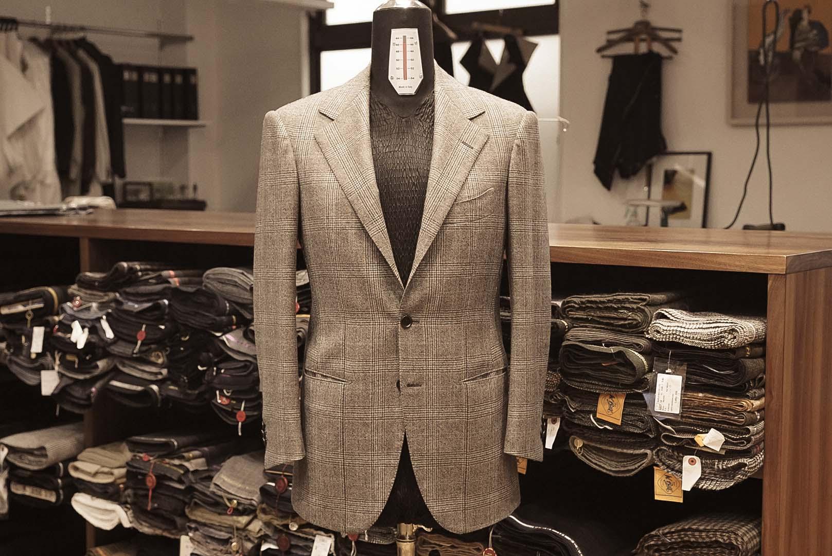 Несмотря на итальянские корни, здесь не чураются и элементов британского стиля: на вешалке висит охотничье пальто с рукавом реглан из плотного твида в елочку и формальный честерфилд из верблюжьей шерсти — такие с трудом представишь в теплом и влажном климате Токио, но клиентам-англофилам нравится. Кстати, костюмную шерсть Нориюки тоже в основном заказывает из Англии и Шотландии. Нориюки самостоятельно кроит, утюжит и сметывает пиджаки и брюки вместе с двумя другими мастерами, только рубашки отшивают для клиентов в отдельной мастерской в Осаке. Ателье также предлагает готовые аксессуары — семислойные галстуки из модного грубого шелка и тонкой шерсти Seven Fold и обувь от японского мастера Хидэтаки Фукайи (Il Micio) с фирменными угловатыми мысками. Обе марки базируются во Флоренции.